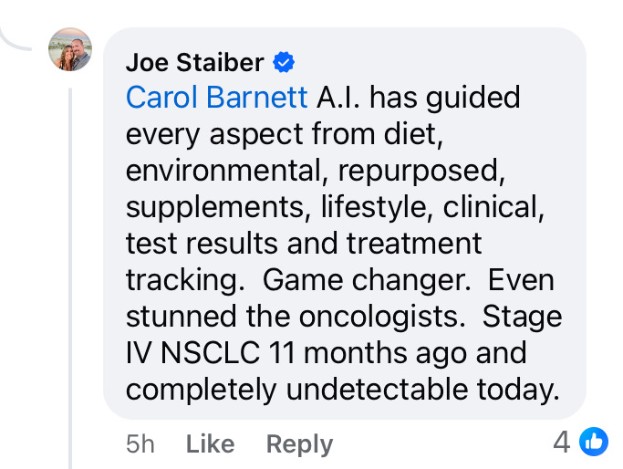 An AI oncologist. Reality on the horizon? Congratulations Carol. Supplements certainly didn’t fuel your cancer!