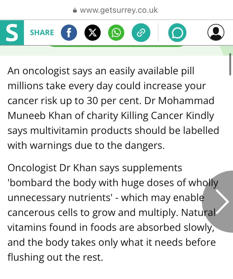 Supplements are a multi-million pound industry, but which ones does your body need (if any)? For how long should you take them? At what dosage? Supplements are a complex subject. This article from a UK NHS oncologist claims synthetic supplements could increase your cancer risk. First time we’ve heard that one. Do consult a qualified medical professional before embarking on a radical program.