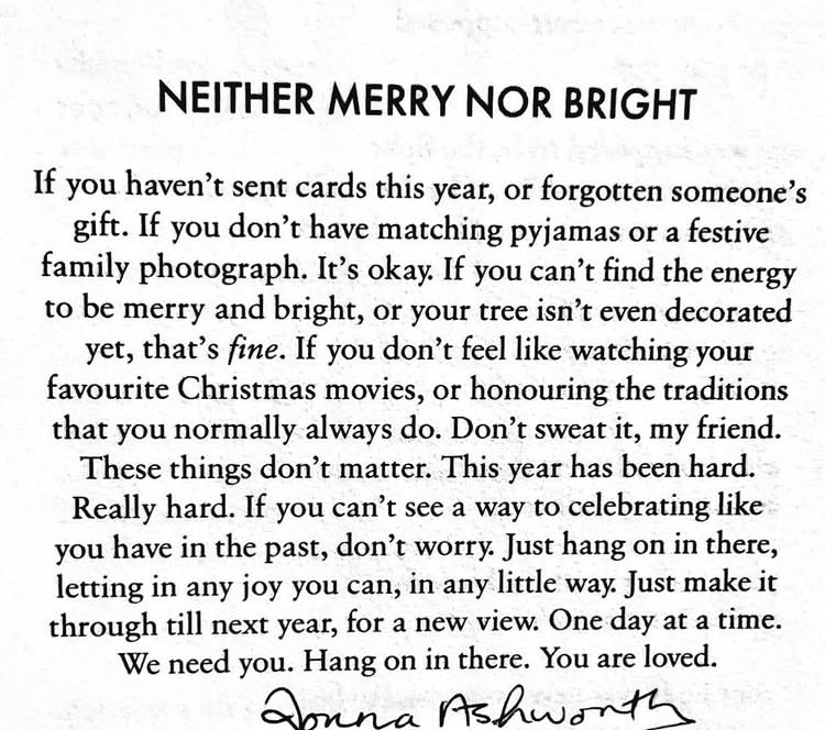 This season is far from festive for some. Here’s a timely reminder from poetess Donna Ashworth.